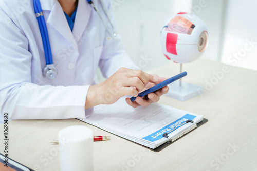 A male doctor wearing glasses sits at a desk in a hospital, explaining eye diseases like glaucoma, cataracts, pterygium, and diabetic retinopathy. Early detection helps prevent vision loss