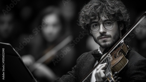 a male music composer at a music concert.