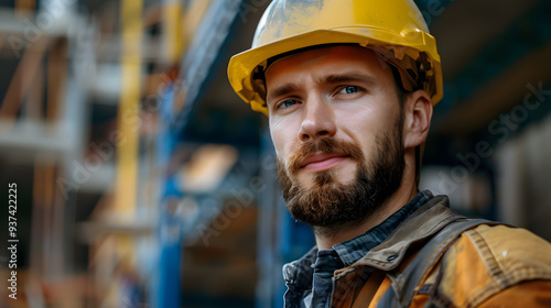 A man, a worker, a builder by profession, in a uniform and a helmet. AI Generated