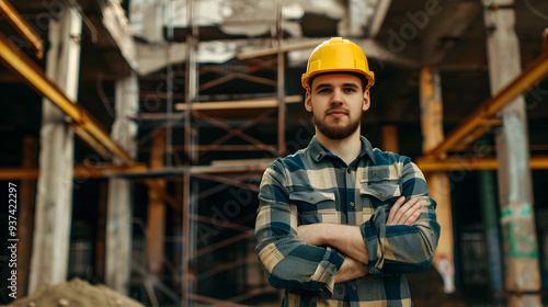 A man, a worker, a builder by profession, in a uniform and a helmet. AI Generated