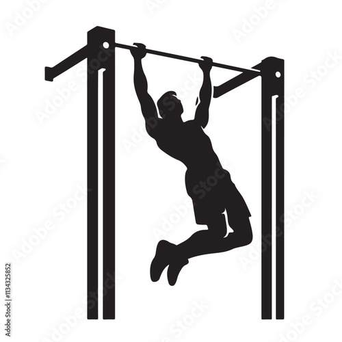 a man doing a pull-up on a pull-up bar silhouette vector illustration