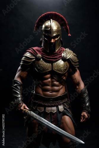 A man dressed in gladiator costume holding a sword in a dramatic pose