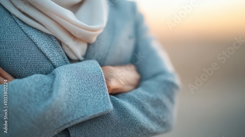 A man elegantly dressed in a suit stands observing the serene sunrise over a desert, representing elegance, contemplation, and the beauty of nature's palette.