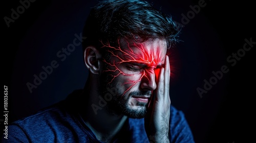 A man experiences intense pain, depicted through red visual effects around his head, conveying a sense of distress and emotional turmoil.