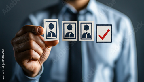 A man holding four cards featuring check marks symbolizing achievement, success, and completion in a positive light