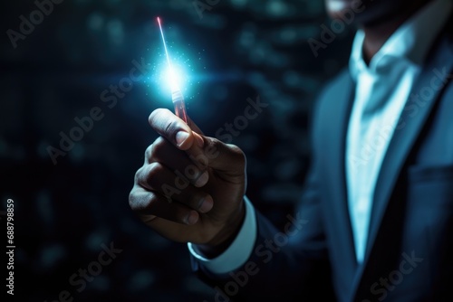 A man in a suit holding a sparkler in his hand. Perfect for celebrations and festive occasions