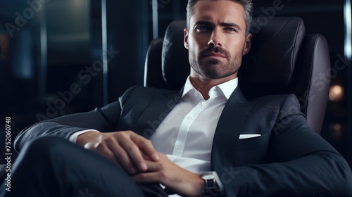 A man in a suit sitting in a chair. Suitable for business concepts