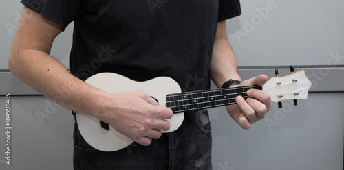 A man plays ukulele