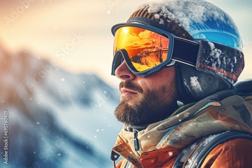A man wearing a helmet and goggles in the snow. Perfect for winter sports enthusiasts and outdoor adventurers