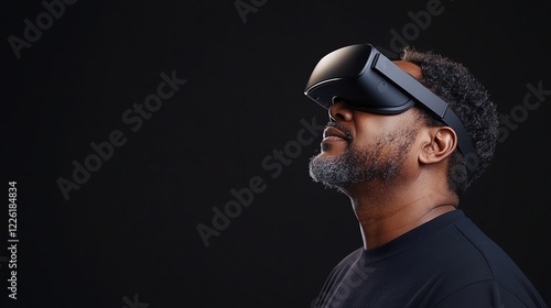 A man wearing a virtual reality headset, immersed in a digital experience. The image highlights the innovative advancements in technology and the future of gaming.