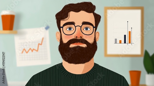 A man with a beard and glasses looks directly at the camera in an office setting.