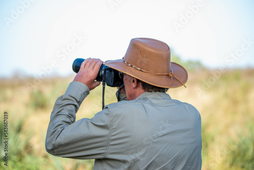 a man with a cowboy hat looking through his camera