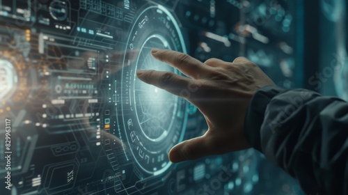 A man's hand reaching out towards a futuristic chatbot interface, symbolizing the potential of technology to bridge global connections and revolutionize human interaction,