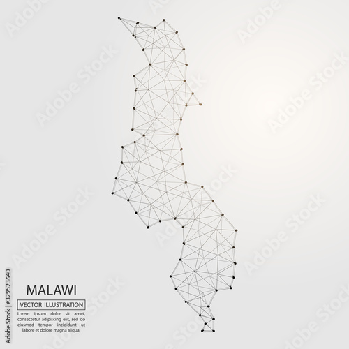 A map of Malawi consisting of 3D triangles, lines, points, and connections. Vector illustration of the EPS 10.