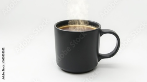A matte colour coffee mug filled with steaming coffee set against a plain white background, inviting warmth and simplicity in its design.