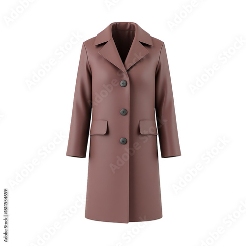 A mauve-colored, mid-length coat with a collared neckline.