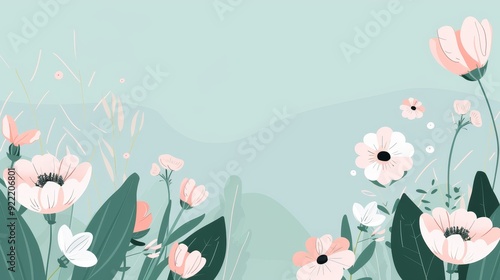 A meadow adorned with flowers, uncluttered and clean design, 2D vector illustration, pastel palette