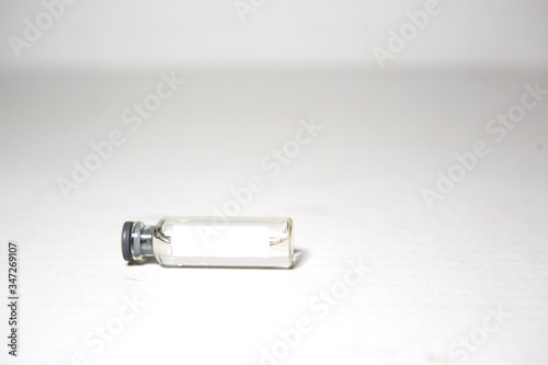 A medical bottle with a place to sign it. Ampoule on a white background, isolate, space for text. Pharmaceutical and chemical laboratory concept