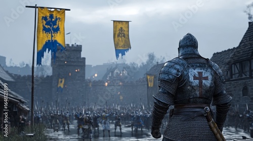 A medieval competition where knights engaged in jousting with an enthusiastic crowd cheering them on from the sidelines