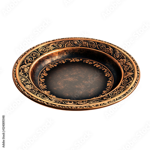 A medieval plate with intricate engravings and an antique finish. A perfect addition to historical and rustic designs. Isolated on a transparent background.