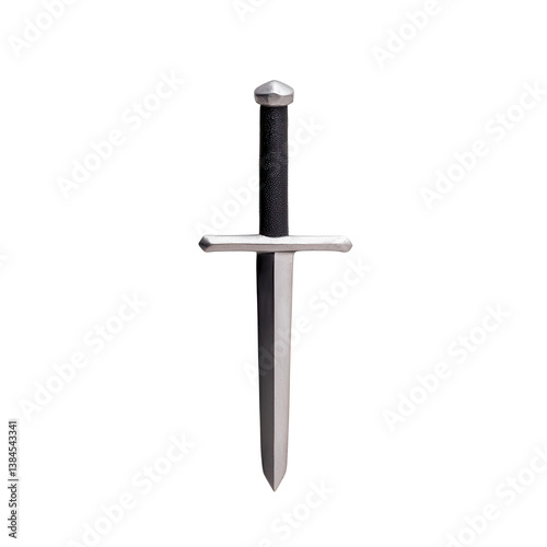 A medieval sword with a simple black grip and silver blade. isolated against a transparent background.