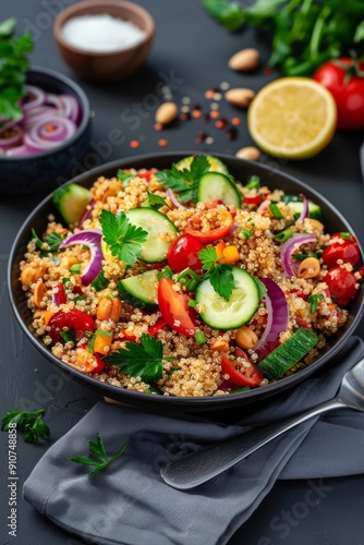 A Mediterranean Turkish dish featuring quinoa, designed as a delicious meal that supports improved digestion and overall health.