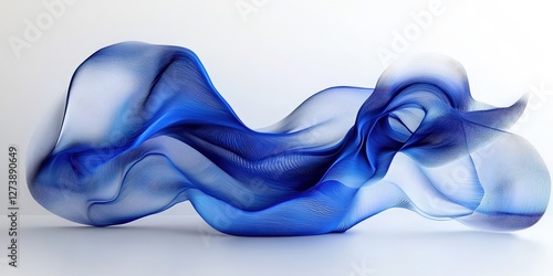 A mesmerizing 3D blue and white wave-like sculpture with delicate, flowing lines evoking motion and depth, showcasing a vivid interplay of colors