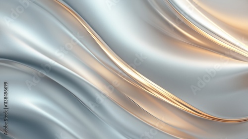 A mesmerizing abstract digital art piece featuring flowing metallic waves in shades of silver and gold.