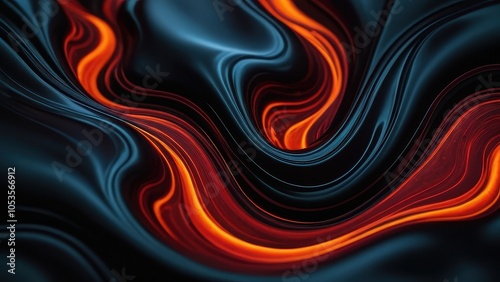 A mesmerizing abstract image showcasing swirling patterns of orange and black, evoking a sense of movement and fluidity ideal for creative projects