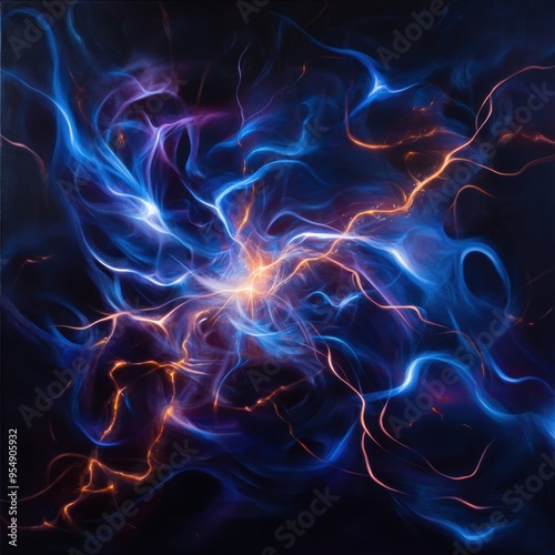 A mesmerizing abstract swirl of vibrant blue and orange light, evoking energy and motion in a cosmic background.