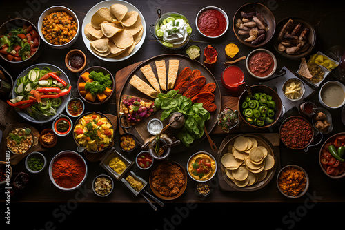 A Mesmerizing Bird's Eye View of a Table Laden with International Cuisines