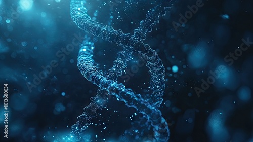 A mesmerizing blue 3D rendering of a DNA double helix structure, showcasing the intricate details of its molecular makeup.
