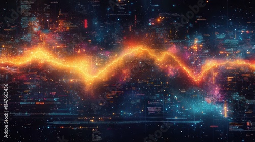 A mesmerizing digital art piece showcasing a vibrant and intricate cybernetic network with glowing circuits and data patterns against a cosmic backdrop