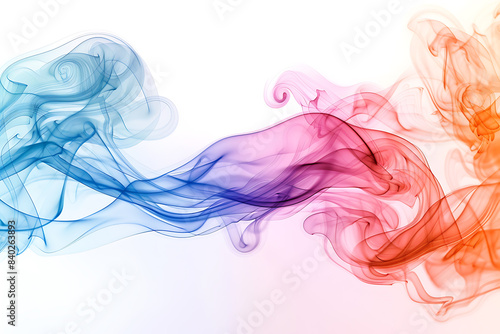 A mesmerizing display of colored smoke swirling gracefully against a pristine white background, creating a captivating visual effect.