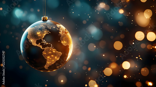A mesmerizing globe ornament shining amidst a backdrop of soft bokeh lights, symbolizing global connections.