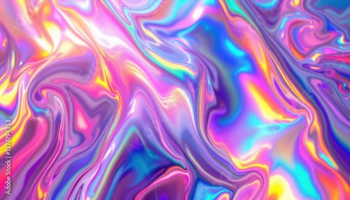 A mesmerizing holographic abstract background featuring an iridescent texture that shifts and shimmers like a rainbow-colored foil, as if a hologram