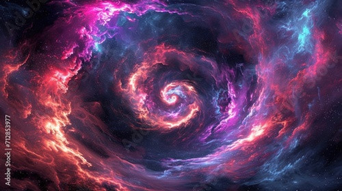 A mesmerizing neon spiral illuminated by the cosmic energy of millions of stars and gas clouds