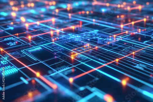A mesmerizing representation of a cybernetic smart grid, composed of glowing holographic AI-driven data flows, interconnected energy pathways, and pulsating digital nodes. The high-tech futuristic