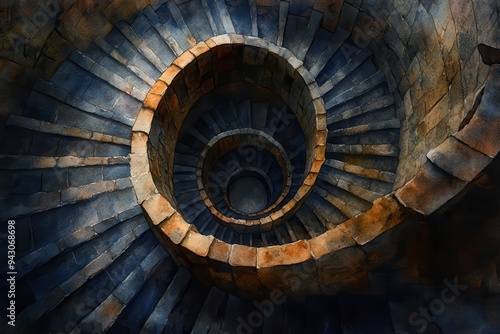 A mesmerizing spiral staircase, showcasing intricate stone steps and captivating shadows, perfect for architectural inspiration.