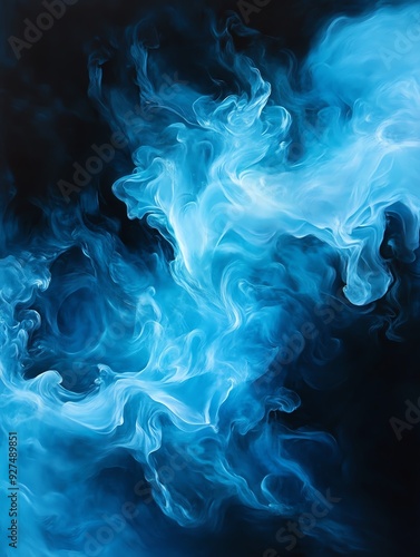 A mesmerizing swirl of blue smoke against a dark background, creating an ethereal and dynamic visual effect.