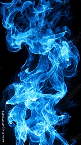A mesmerizing swirl of blue smoke rises against a dark background, creating an ethereal and tranquil atmosphere.