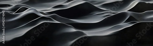 A mesmerizing visual of smooth, undulating waves in dark tones, creating an ethereal feel and highlighting shapes and shadows.