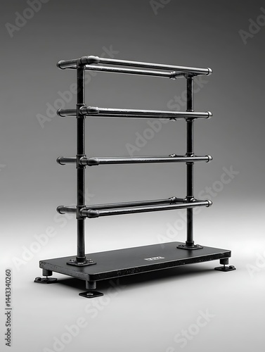 A metal rack. The rack has four tiers. The rack has a metal base.