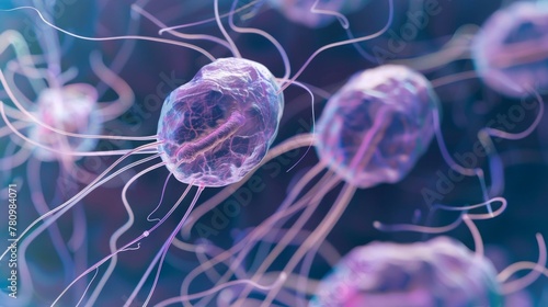 A microscopic image of Giardia lamblia a that causes the intestinal giardiasis. The image shows the ovalshaped with hairlike structures