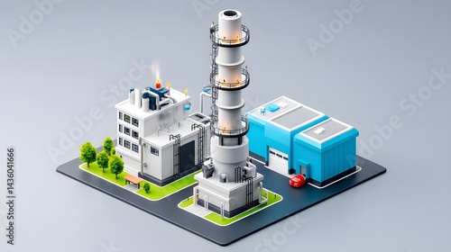 A miniature industrial complex featuring a factory and a tall smokestack