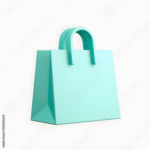 A minimalist 3d rendered aqua blue paper bag with handles isolated on a white background
