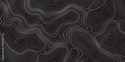 A minimalist, abstract background featuring a topographical map pattern. Thin, flowing contour lines in shades of light grey and white undulate across a dark, solid grey or black canvas.