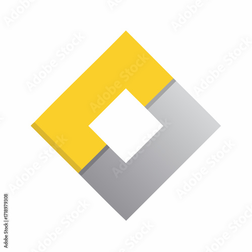 A minimalist abstract geometric logo design featuring a yellow and gray rhombus with a white square cutout in the center.