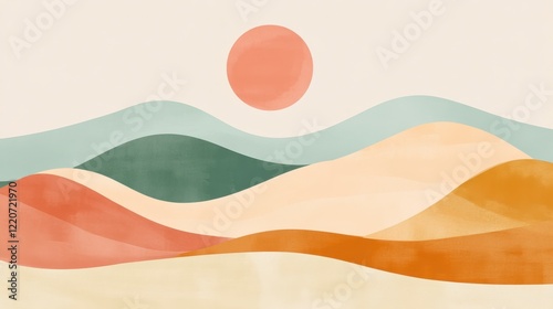 A minimalist abstract landscape using soft gradients to suggest hills and sky in calming pastel hues