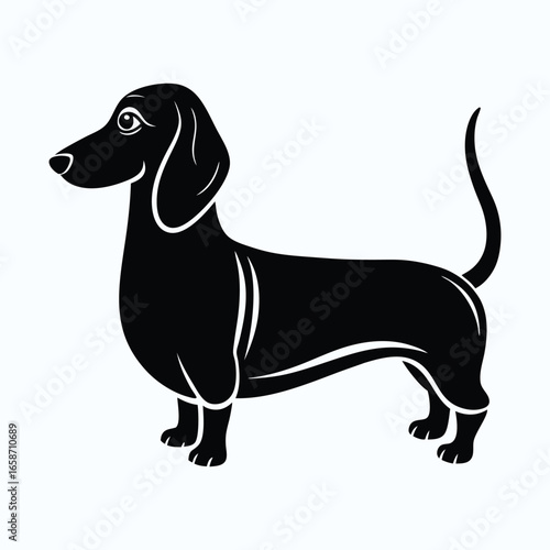 A minimalist black silhouette of a dachshund standing proudly perfect for pet themed designs